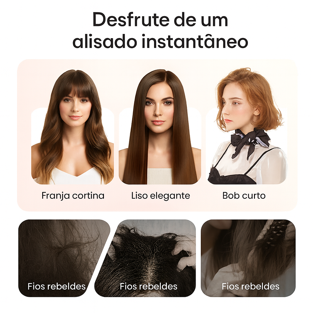 DUPLA AÇÃO – Transforma facilmente cachos rebeldes em cabelos lisos e retos ou doma ondas indisciplinadas. Uma ferramenta que funciona em todos os tipos de cabelo e proporciona resultados perfeitos, sem frizz, sempre.