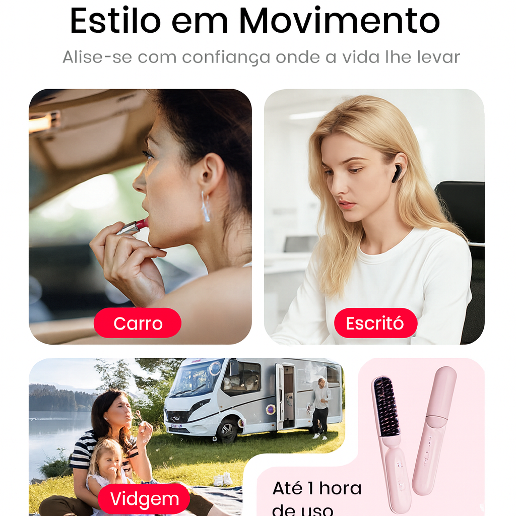 ESCOVA ALISADORA SEM FIOS EM CERÂMICA – Possui um condutor de calor em cerâmica lisa (16-20 mm) para uma distribuição uniforme do calor. Desliza sobre o cabelo e minimiza os nós e os danos, preservando o brilho e protegendo o seu precioso cabelo.
